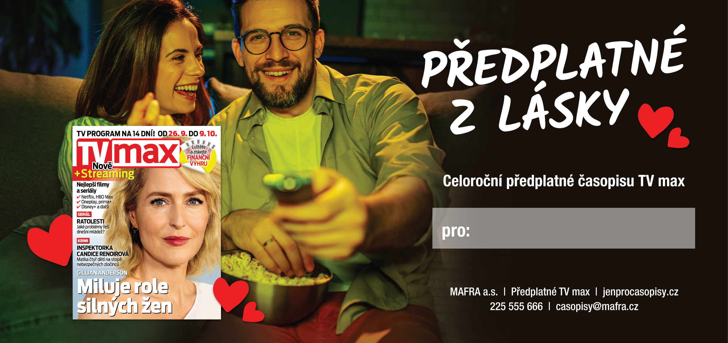 Chtěli byste překvapit svou drahou polovičku praktickým a milým dárkem? Předplatným časopisu TV max potěšíte na celý rok každého milovníka televize!